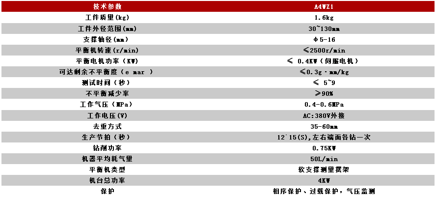 端面鉆孔四工位全自動平衡機的生產,不僅僅提高了生產及校正工件的效率,其平衡測試時間更是達到了5秒之短。(詳見產品參數)本機同時具有操作簡潔,應用方便,精度高等特點。